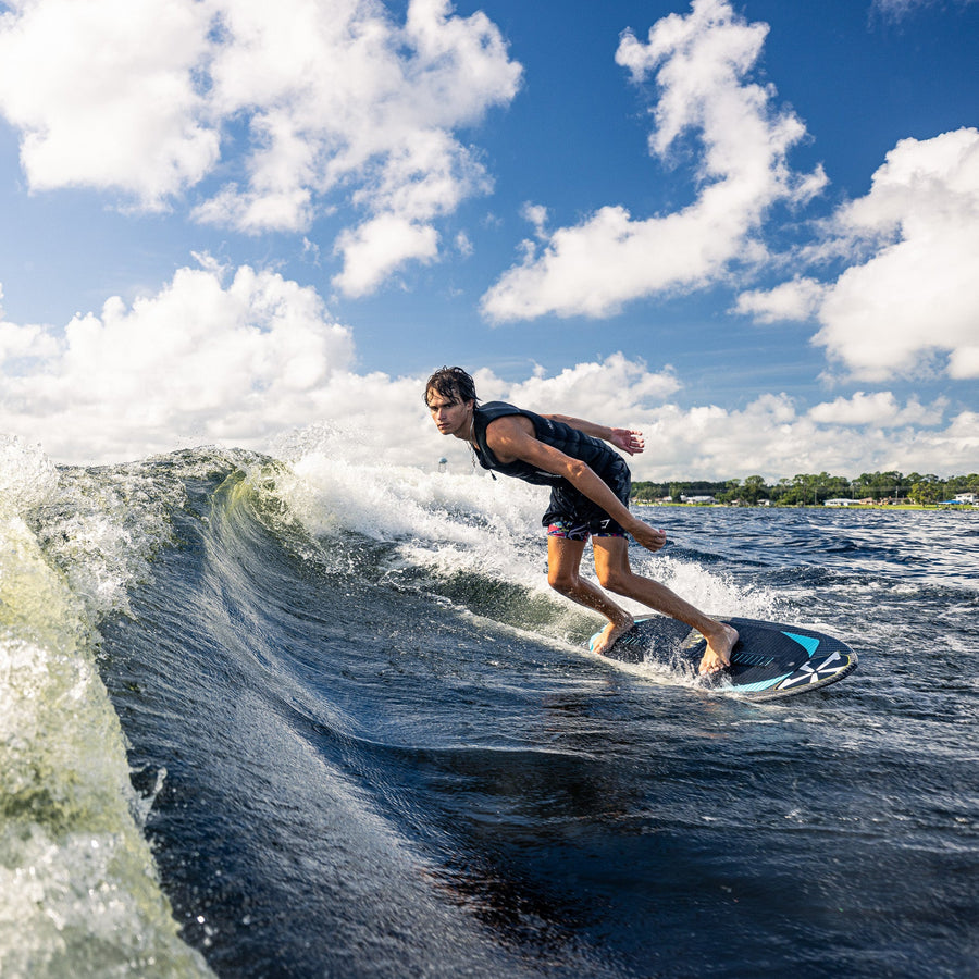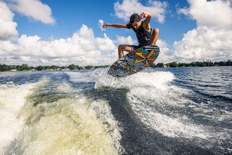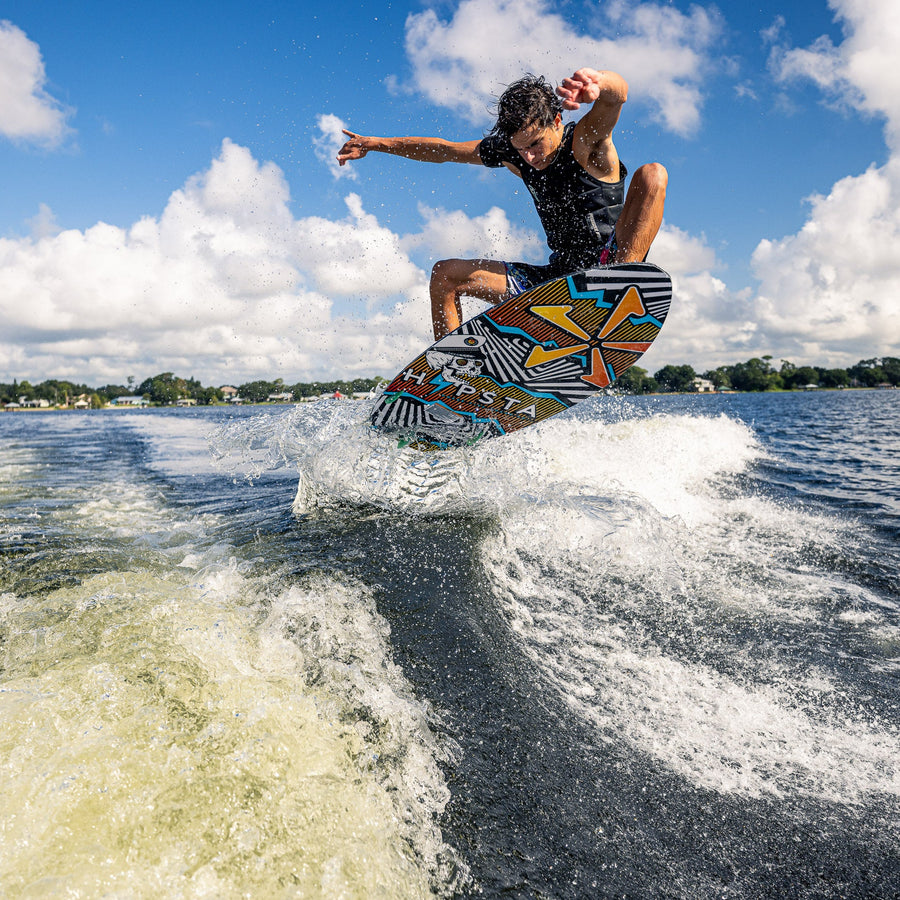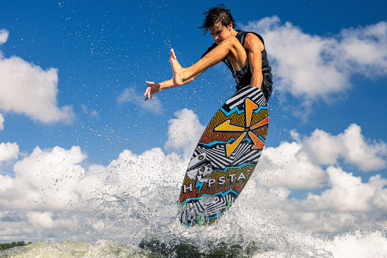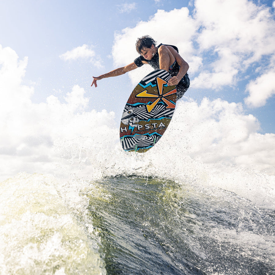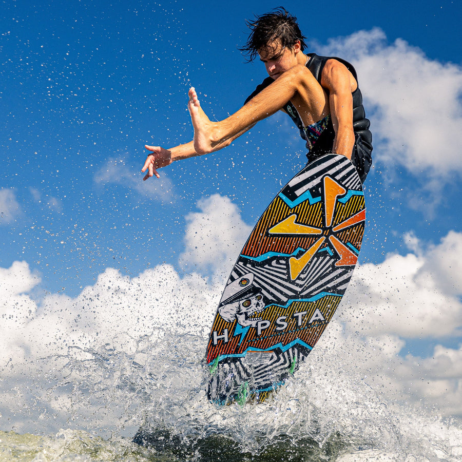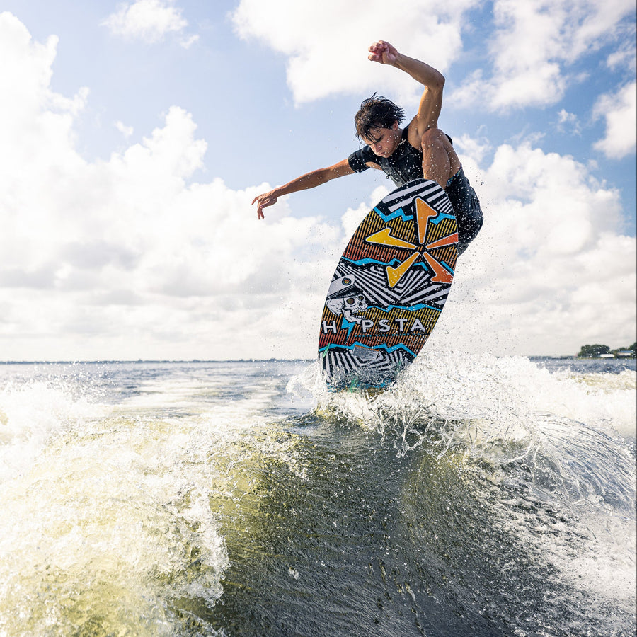 The Hypsta V2 has been re-vamped with a sleek outline for 2026! We felt that there was more shred-a-bility to be found in the Hypsta shape and maximized performance with the new outline. The nose and mid-section of the Hypsta has stayed the same, we pulled in the tail shape considerably to give the board more control and maneuverability without sacrificing too much volume. This board is a catch all, easy rider to get the entire crew wake surfing behind the boat- now with more shredding packed into it for the more advanced rider! It comes equipped with a versatile TRI-Fin setup to suit all riding levels.