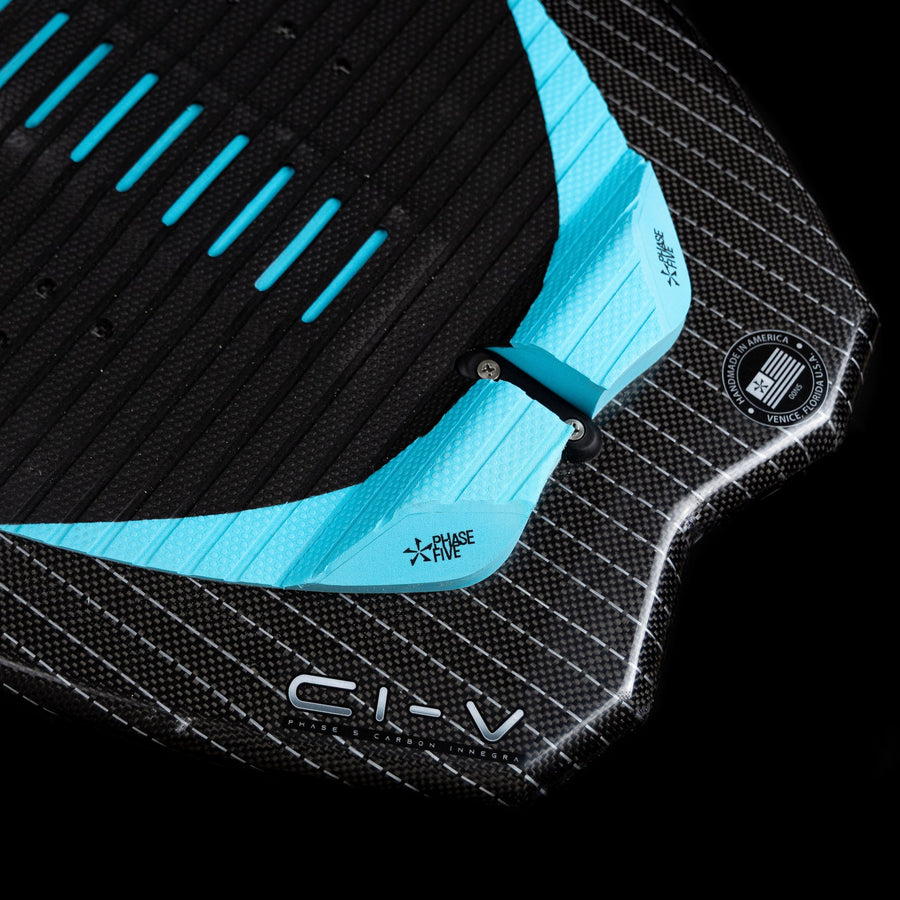 CI-V Carbon glass is a glass weave that incorporates Carbon/Innegra fibers. The Innegra is weaved into the Carbon to run in vertical lines to give it a unique look. It is lightweight and makes a very fast/stiff board for those demanding the best performance.