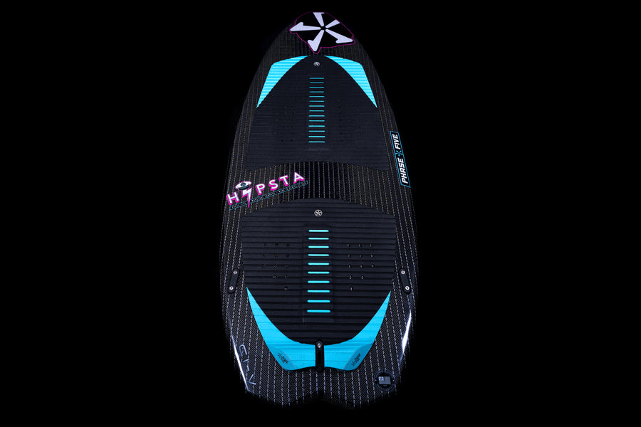 Shorter and wider compared to the average wakesurf board, the Hypsta is a compact powerhouse. The Hypsta’s full width carries down to a squared swallowtail making it fast, stable and maneuverable. The Phase Five Hypsta Wakesurfer is a short board that can spin easily. If you are a large rider, don’t let the Hypsta’s short length make you think it won’t stay in the wave. This bad boy carries tons of momentum and effortlessly remains in the sweet spot. The Phase Five Hypsta Wakesurfer is in a league of its own. The Hypsta is built using our CI-V™ (Carbon/Innegra Vertical Weave) material, and a three fin setup loaded with our 2” Skim Fin in the center accompanied by 1” Fakie Skim fins on the outside.